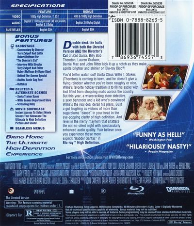 "Bad Santa" is the story of two conmen who go on a road trip to malls dressed as Santa and his elf. Rather than spreading good cheer, the duo's motive is to rob each establishment, a strategy that becomes complicated when they encounter an 8-year-old who teaches them the true meaning of Christmas. |