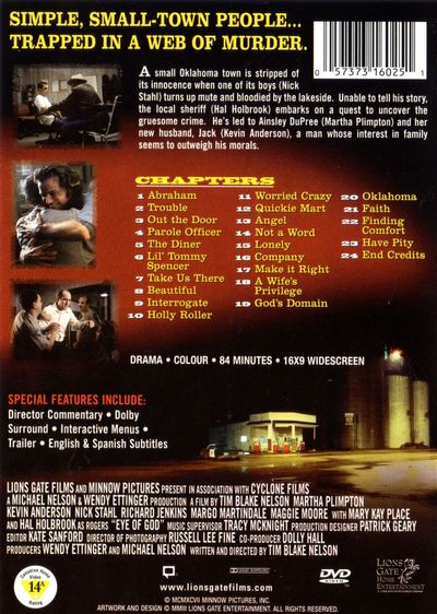 A small Oklahoma town is stripped of its innocence when one of its boys (Nick Stahl) turns up mute and bloodied by the lakeside. Unable to tell his story, the local sheriff (Hal Holbrook) embarks on a quest to uncover the roots of a gruesome crime. He's led to Ainsley DuPree (Martha Plimpton) and her new husband, Jack (Kevin Anderson), a man whose interest in family may very well outweigh his morals. |
