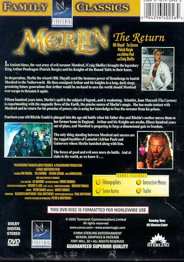 "Merlin: The Return" is the story of the battle between good and evil. The dark forces of Mordred are pitted against the mythical sorcery of Merlin. Mordred and his mother Morgana have been imprisoned in another world for the past 1500 years while Merlin's magical powers kept them at bay. However, in the present, a scientist accidentally finds the gateway to the other world and is about to release Mordred into 20th Century life. Arthur is reawakened from his slumber and together with Merlin, tries to find a way to stop Mordred from re-entering this world