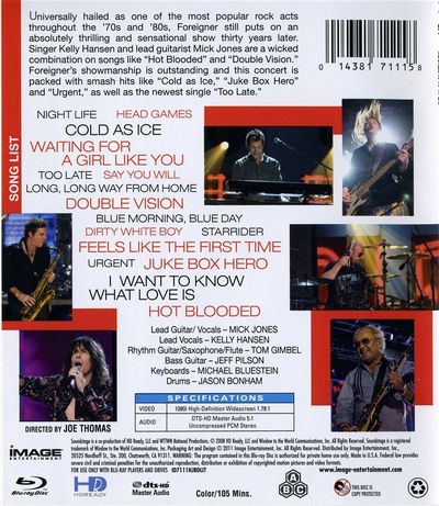 Song List: Night Life, Head Games, Cold As Ice, Waiting For A Girl Like You, Too Late, Say You Will, Long Long Way From Home, Double Vision, Blue Morning, Blue Day, Dirty White Boy, Starrider, Feels Like the First Time, Urgent, Juke Box Hero, I Want to Know What Love Is, Hot Blooded