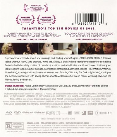 A provocative comedy about sex, marriage and finding yourself again, AFTERNOON DELIGHT follows Rachel (Kathryn Hahn, Step Brothers, We're the Millers), a quick-witted yet tightly coiled thirty-something frustrated with her daily routine of preschool auctions and a lackluster sex life and career that has gone kaput. Looking to spice up her marriage, Rachel takes her husband, Jeff (Josh Radnor, Howl Met Your Mother, Liberal Arts), to a strip club and meets McKenna (Juno Temple, Killer Joe, The Dark Knight Rises), a stripper she becomes obsessed with saving. Rachel adopts McKenna as her live-in nanny, wreaking havoc on her friends, family and herself.