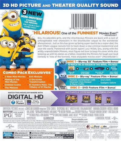 Gru, his adorable girls, and the mischievous Minions are back with a cast of unforgettable new characters in the blockbuster sequel to the worldwide phenomenon. Just as Gru has given up being super-bad to be super-dad, the Anti-Villain League recruits him to track down a new criminal mastermind and save the world. Partnered with secret agent Lucy Wilde, Gru, along with the wildly unpredictable Minions, must figure out how to keep his cover while also keeping up with his duties as a father. Assemble the Minions for laugh-out-loud comedy in “one of the funniest, most enjoyable movies ever!” (MovieGuide®) |