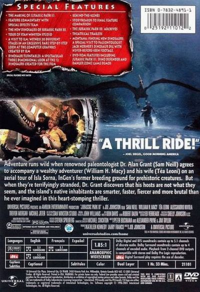 In need of funds for research, Dr. Alan Grant accepts a large sum of money to accompany Paul and Amanda Kirby on an aerial tour of the infamous Isla Sorna. It isn't long before all hell breaks loose and the stranded wayfarers must fight for survival as a host of new -- and even more deadly -- dinosaurs try to make snacks of them. |