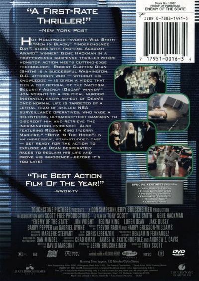 Hotshot Washington lawyer Robert Dean becomes a victim of high-tech identity theft when a hacker slips an incriminating video into his pocket. Soon, a rogue National Security agent sets out to recover the tape -- and destroy Dean. |