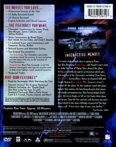 As teen Alex, five classmates and their teacher board a plane for a school trip to Paris, Alex has a vision of doom and convinces his friends to deboard, saving their lives. But now, it seems Death feels cheated and is out to claim each survivor. Alex attempts to figure out Death's grand design as, one by one, the others suffer horrific fates. |