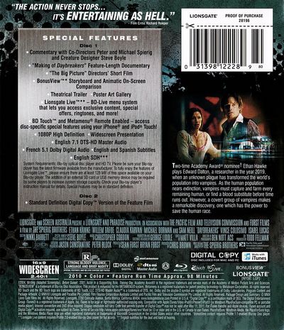 In a world 10 years into the future, vampires make up the vast majority of the population with only 5% of the human race remaining. This presents particular challenges as the vampires' food supply - human blood - is dwindling and rationing is now the norm. There is growing evidence that vampires deprived of an adequate blood supply are themselves evolving into wild, vile creatures that attack anyone and anything in order to survive. Dr. Edward Dalton, a vampire and hematologist who works for a pharmaceutical firm, has been working on finding an artificial blood supply that will meet the vampire society's needs. He is sympathetic to humans and sees his work as a way of alleviating their suffering but his views on finding a solution change considerably when he meets someone who found a way to transform himself from being a vampire to again take human form. |
