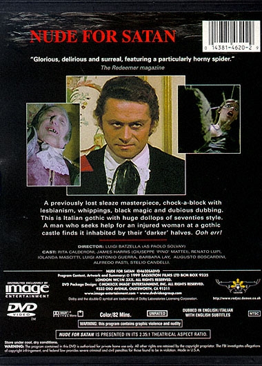 Two strangers who wreck their cars on a rural highway during a storm take refuge in a mansion. A doctor (James Harris), who has left an unconscious woman, Susan (the striking Rita Calderoni), in his car walks in to discover depravities behind every door when Susan suddenly appears, dressed in a flowing gown and acting as if they were old friends. The next morning, Susan wakes up in his car and enters the mansion to find a leering aristocrat, his snaggle-toothed servant, and the doctor dressed as a count and acting like a decadent dilettante. It's as if the two exist in parallel universes, confronted with ghost versions of one another in a portal to the past controlled by a devilish hedonist.