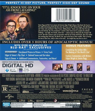 20 years after attempting an epic pub crawl, five childhood friends reunite when one of them becomes hell bent on trying the drinking marathon again. They are convinced to stage an encore by mate Gary King, a 40-year old man trapped at the cigarette end of his teens, who drags his reluctant pals to their home town and once again attempts to reach the fabled pub, The World’s End. As they attempt to reconcile the past and present, they realize the real struggle is for the future, not just theirs but humankind’s. Reaching The World’s End is the least of their worries. |