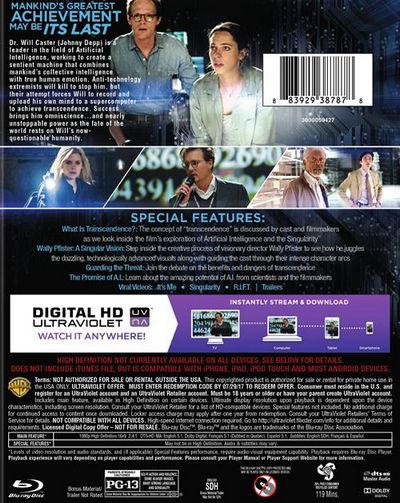 Dr. Will Caster (Johnny Depp) is a leader in the field of Artificial Intelligence, working to create a sentient machine that combines mankind's collective intelligence with true human emotion. Anti-technology extremists will kill to stop him, but their attempt forces Will to record and upload his own mind to a supercomputer to achieve transcendence. Success brings him omniscience... and nearly unstoppable power as the fate of the world rests on Will's now questionable humanity. |