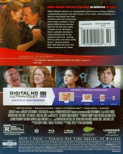 Robin Williams delivers an unforgettable performance as Henry Altmann, a perpetually grumpy man who's angry at the world - and everybody in it. Henry's mood goes from bad to worse when he's diagnosed with brain condition, and a doctor (Mila Kunis) abruptly tells him he has only ninety minutes to live. Shocked, Henry suddenly decides to make amends with all the people he has hurt, rushing off on a wild - and often wildly funny - journey across New York that will touch the lives of everyone he meets.