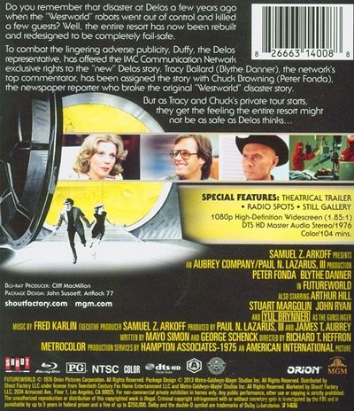 Two years after the Westworld tragedy in the Delos amusement park, the corporate owners have reopened the park following over $1 billion in safety and other improvements. For publicity purposes, reporters Chuck Browning (Fonda) and Tracy Ballard (Danner) are invited to review the park. Just prior to arriving at the park, however, Browning is given a clue by a dying man that something is amiss. |
