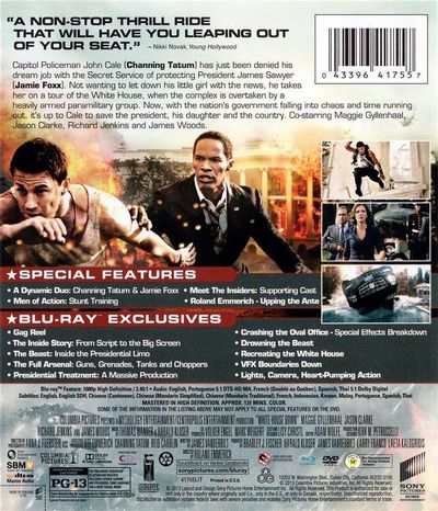 A Dynamic Duo: Channing Tatum & Jamie Foxx Men Of Action: Stunt Training Meet The Insiders: Supporting Cast Roland Emmerich: Upping The Ante Gag Reel (Blu-ray Exclusive) The Inside Story: From Script To The Big Screen (Blu-ray Exclusive) The Beast: Inside The Presidential Limo (Blu-ray Exclusive) The Full Arsenal: Guns, Grenades, Tanks and Choppers (Blu-ray Exclusive) Presidential Treatment: A Massive Production (Blu-ray Exclusive) Crashing The Oval Office - Special Effects Breakdown (Blu-ray Exclusive) Drowning The Beast (Blu-ray Exclusive) Recreating The White House (Blu-ray Exclusive) VFX Boundaries Down (Blu-ray Exclusive) Lights, Camera, Heart-Pumping Action (Blu-ray Exclusive) |