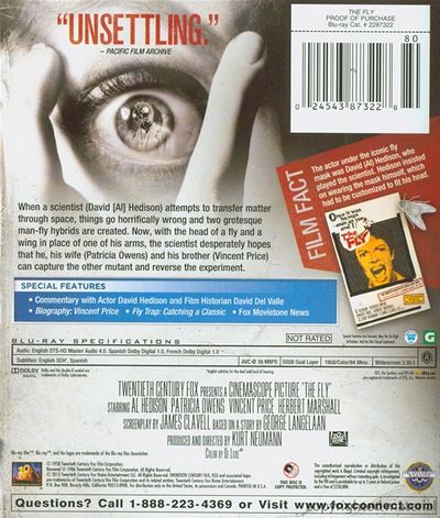 In Montreal, the industrial François Delambre is called late night by his sister-in-law Helene Delambre. She tells him that she has just killed her beloved husband Andre Delambre, using the press of their plant to press his head and left hand. François calls his acquaintance, Inspector Charas, and later the reluctant Helene is convinced to tell them what happened. She explains that Andre had invented a matter transportation apparatus, and while experimenting with himself, a fly entered the chamber, exchanging one hand and the head with him after the transference. |