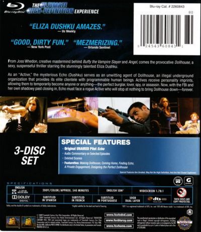 Echo is one of the "Actives" in the elite and illegal Dollhouse. Through different personality downloads, she plays the role of a lovestruck girl on a romantic weekend, and then a ruthlessly efficient kidnapping negotiator. FBI Agent Paul Ballard is struggling with his assignment to uncover information on the Dollhouse.