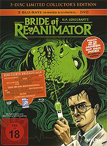 Audiokommentare (nur bei Unrated Version) von Regisseur & Crew von den Hauptdarstellern Making of (22:49 Min.) Behind the Scenes: Meg wird reanimiert (7:42 Min.) Karneval Sequenz (1:56 Min.) Podcast: "120 Jahre Lovecraft" (89:55 Min.) Hörspiel: Dark Adventure Radio Theatre präsentiert "Herbert West - Reanimator" (englisch) (68:40 Min.) Vorspann Re-Animator (restauriert) (2:36 Min.) Kinotrailer "Bride of Re-Animator" (1:53 Min.) Kinotrailer "Re-Animator" (2:06 Min.) Filmtipps (Disc 1): Der blutige Pfad Gottes (2:09 Min.) The Woman (1:14 Min.) Chained (1:28 Min.) Society (2:08 Min.) Fresh Meat (1:43 Min.) Filmtipps (Disc 2): Rubber (1:13 Min.) Schloss des Schreckens (2:49 Min.) Comedown (1:37 Min.) 22 Ways To Die (1:14 Min.) Dead And Buried (2:25 Min.) |