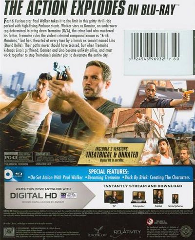In the criminal underworld of Detroit, the streets are overrun with violence and drugs and the hand of corruption reaches into the lives of everyone; well almost everyone. For Lino (David Belle) every day is a fight to live an honest life. But when a drug lord kidnaps his girlfriend, Lino is forced to team up with Damien Collier (Paul Walker), an undercover cop who’s been tracking this king pin's involvement in something even more sinister – a plot to devastate the entire city. Together they uncover a trail of corruption that leads all the way to the top. |