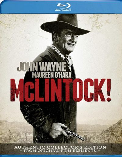 McLintock! is a 1963 comedy Western starring John Wayne and Maureen O'Hara, and loosely based on Shakespeare's The Taming of the Shrew. The film is famous (or infamous) for its two spanking scenes, in which mother and daughter are each paddled with coal shovels: the daughter by her suitor, the mother by her estranged husband. |