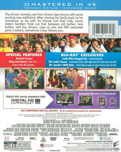 Just because they're a little older doesn't mean they've grown up. The all-star comedy cast from Grown Ups returns with some exciting new additions! After moving his family back to his hometown to be with his friends and their kids, Lenny (Adam Sandler) finds out that between old bullies, new bullies, wild bus drivers, cops on skis and 400 costumed party crashers, sometimes crazy follows you. |
