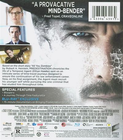 Based on the short story "All You Zombies" by Robert A. Heinlein, Predestination chronicles the life of a Temporal Agent (Ethan Hawke) sent on an intricate series of time-travel journeys designed to ensure the continuation of his law enforcement career. Now, on his final assignment, the Agent must recruit his younger self while pursuing the one criminal that has eluded him throughout time. |