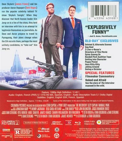 Dave Skylark (James Franco) and his producer Aaron Rapoport (Seth Rogen) run the popular celebrity tabloid TV show "Skylark Tonight." When they discover that North Korean dictator Kim Jong-un is a fan of the show, they land an interview with him in an attempt to legitimize themselves as journalists. As Dave and Aaron prepare to travel to Pyongyang, their plans change when the CIA recruits them, perhaps the most unlikely candidates, to "take out" Kim Jong-un. |