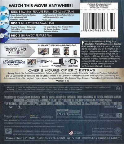 From acclaimed director Ridley Scott (Gladiator, Prometheus) comes Exodus: Gods and Kings, the epic tale of one man's daring courage to take on the might of an empire. Using state-of-the-art visual effects, this spectacular adventure brings new life to the story of Moses (Christian Bale) as he defies the Pharoh Ramses (Joel Edgerton), setting 400,000 slaves on a monumental journey of escape from Egypt and its terrifying cycle of deadly plagues. |