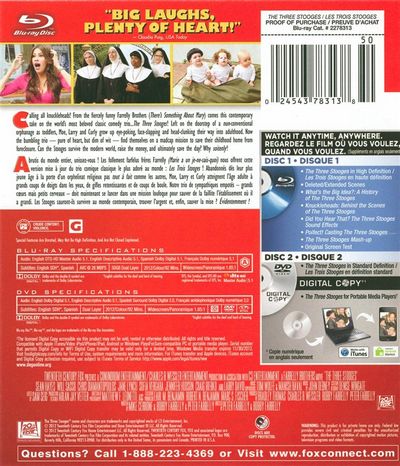 Though it's a reboot of a classic slapstick series, The Three Stooges fits right into Peter and Bobby Farrelly's filmography. Throughout their comedies, especially Dumb and Dumber, they've always championed the clueless and clumsy, and that describes this trio perfectly: Moe, Larry, and Curly (Chris Diamantopoulos, Sean Hayes, and Will Sasso, taking over from Benicio Del Toro, Sean Penn, and Jim Carrey). In the prologue or first "episode" (two more will follow), an unseen character drops three babies off at a Catholic orphanage. At first, the nuns (Jane Lynch, Jennifer Hudson, and Larry David--yes, Larry David) take delight in the spirited infants with the strange hairstyles, but 10 years later, their antics have worn thin. A well-heeled couple (Stephen Collins and Carly Craig) considers adoption, but things don't work out, so 25 more years pass, during which they become the orphanage's bumbling handymen, which necessitates further head-bonks, nyuk-nyuk-nyuks, and woo-woo-woos. When the threat of closure comes to the only home they've ever known, the boys set out to save the day. This leads them to a wealthy woman (Sofía Vergara), her lover (Craig Bierko), and her father-in-law (Collins), encounters that bring them to the attention of MTV's Jersey Shore, which provides a solution to their dilemma. The Farrellys may have their hearts in the right place, but The Three Stooges ranks as their weakest effort to date. The cast does what they can, but the script is terminally unfunny, and the frenetic direction only drives the point home.
