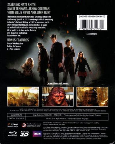 The Doctors embark on their greatest adventure in this 50th anniversary special. In 2013, something terrible is awakening in London’s National Gallery; in 1562, a murderous plot is afoot in Elizabethan England; and somewhere in space an ancient battle reaches its devastating conclusion. All of reality is at stake as the Doctor’s own dangerous past comes back to haunt him. |