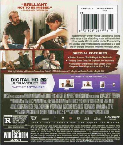 "The Making of Joe" Featurette "The Long Gravel Drive: The Origins of Joe" Featurette Deleted Scenes Audio Commentary with Director David Gordon Green, Composer David Wingo and Actor Brian D. Mays |