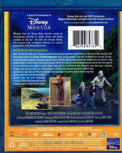 Tia and Tony are two orphaned youngsters with extraordinary powers. Lucas Deranian poses as their uncle in order to get the kids into the clutches of Deranian's megalomaniacal boss, evil millionaire Aristotle Bolt, who wants to exploit them. Jason, a cynical widower, helps Tia and Tony escape to witch mountain, while at the same time Tia and Tony help Jason escape the pain of the loss of his wife. |
