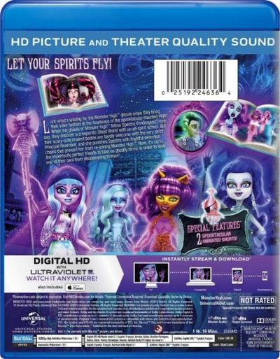 Lurk what's waiting for the Monster High ghouls when they bring their killer fashion to the howlways of the spooktacular Haunted High! When the ghouls of Monster High follow Spectra Vondergeist one day, they discover a creeperiffic Ghost World with an all-spirit school. But their scary-cute student bodies are hardly welcome with the very strict Principal Revenant, and she punishes Spectra with frightful detention chains that prevent her from re-joining Monster High. Now, it's up to the imperfectly perfect friends to take on ghostly forms in order to save one of their own from disappearing forever! |