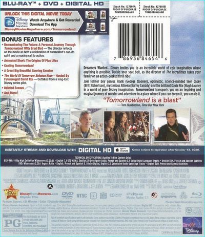Bound by a shared destiny, a bright, optimistic teen bursting with scientific curiosity and a former boy-genius inventor jaded by disillusionment embark on a danger-filled mission to unearth the secrets of an enigmatic place somewhere in time and space that exists in their collective memory as "Tomorrowland." |