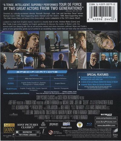 Directed by critically-acclaimed director Kenneth Branagh, Jude Law and two-time Oscar® -winner Michael Caine (1986, Best Supporting Actor, Hannah and Her Sisters: 1999, Best Supporting Actor, The Cider House Rules) join forces in this sharp-witted, modern adaption of the 1972 classic Sleuth.