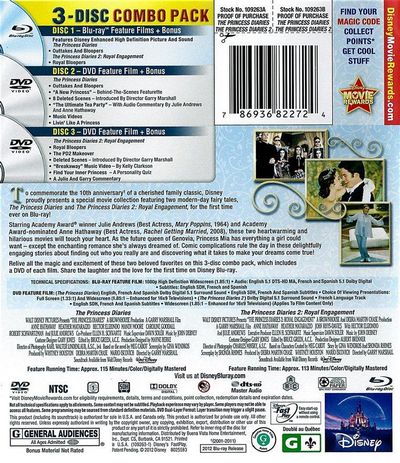 Outtakes & Bloopers (480p, 4:20). A New Princess (480p, 24:19): A humorous feature that takes a lighthearted look at the film, including cast and crew assembly, the qualities the cast brought to the film, specifics of the plot and Hathaway's immersion into the role, Garry Marshall's work as director, anecdotes from the set, and more. Audio Commentary: Director Garry Marshall delivers an easy, breezy, fun, insightful, and technically informative track. He speaks on, well, name it, and Marshall probably talks about it. This is a rapid-fire, mile-per-minute track. Marshall's ability to speak nonstop and with clarity and entertainment value and technical knowhow all at once is truly amazing. Fans will get the most out of it, but this is one of the most thorough tracks out there. Admirers of high-quality commentary tracks will want to give it a listen. Audio Commentary: The Ultimate Tea Party: Julie Andrews and Anne Hathaway share traditional High Tea as they discuss the film from all angles. It's nearly as fast and insightful as the Marshall track. The two cover a wide swath of information both film-related and otherwise. Again, a track that comes highly recommended for fans of the film. Deleted Scenes (480p, various runtimes): Motormouth, Like a Puppet, Spot Removal, Who is That Pizza Man?, A Secret Place, Egg Slicer, Banana Beach, and News Report. With an introduction from Director Garry Marshall. Livin' Like a Princess (480p, 3:27): An animated piece that takes a slightly humorous look at what life was and is like for Princesses. Outtakes & Bloopers (480p, 4:20): The same supplement as found on the Blu-ray disc. Music Video (480p, 4:18): "Miracles Happen" by Myra. Music Video (480p, 3:54): "Supergirl" by Krystal Harris. |