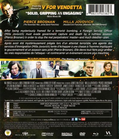Milla Jovovich stars in 'Survivor', a thriller about a State Department employee newly posted to the American embassy in London, where she is charged with stopping terrorists from getting into the U.S. Putting her in the line of fire: targeted for death, framed for crimes she didn't commit, discredited and on the run. Now she must find a way to clear her name and stop a large-scale terrorist attack set for New Year's Eve in New York's Times Square. |