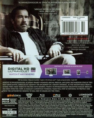 There's a deadly zombie epidemic threatening humanity, but Wade, a small-town farmer and family man, refuses to accept defeat even when his daughter Maggie becomes infected. As Maggie's condition worsens and the authorities seek to eradicate those with the virus, Wade is pushed to the limits in an effort to protect her. Joely Richardson co-stars in this post-apocalyptic thriller. |