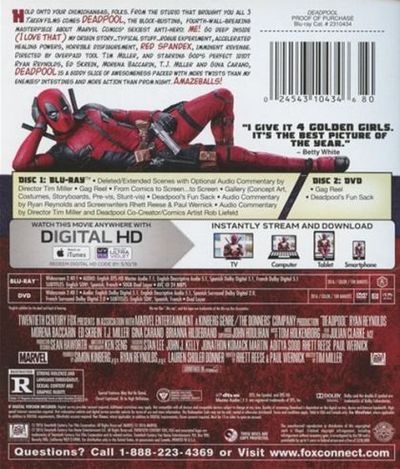 Based upon Marvel Comics’ most unconventional anti-hero, DEADPOOL tells the origin story of former Special Forces operative turned mercenary Wade Wilson, who after being subjected to a rogue experiment that leaves him with accelerated healing powers, adopts the alter ego Deadpool. Armed with his new abilities and a dark, twisted sense of humor, Deadpool hunts down the man who nearly destroyed his life. |