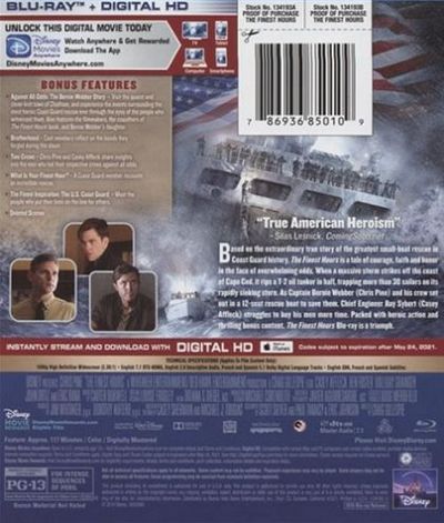 Based on the extraordinary trust story of the greatest small-boat rescue in Coast Guard history, The Finest Hours is a tale of courage, loyalty and honor in the face of overwhelming odds. When a massive storm strikes off the coast of Cape Cod, it rips a T-2 oil tanker in half, trapping more than 30 sailors on its rapidly sinking stern. As Captain Bernie Webber (Chris Pine) and his crew set out in a 12-seat rescue boat to save them, Chief Engineer Ray Sybert (Casey Affleck) struggles to buy his men more time. Packed with heroic larger-than-life action and driven by the men's faith in their mission, themselves and one another, The Finest Hours is a triumph. |