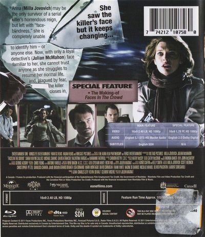 Anna (Milla Jovovich) may be the only survivor of a serial killer's horrendous reign, but left with "face-blindness," she is complety unable to identify him - or anyone else. Now, with only a loyal detective's (Julian McMahon) face familiar to her, she cannot trust anyone as she strugles to resume her normal life, and, plagued by fear, the killer closes in. |