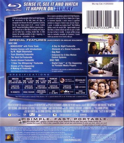 In this heart-pounding apocalypic thriller from M. Night Shyamalan, the writer-director of The Sixth Sense and Signs, an unstoppable event theaters the world's population by attacking the most basic human instinct of all - survival. Academy award nominee Mark Wahlberg stars as Elliot Moore, an ordinary man trying to save his family from a terrifying invisible killer, As elliot discovers the incredible possibility of what is happening it is clear that no one - and nowhere - is safe. |