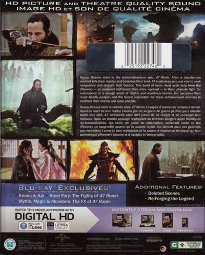 Disc 01 • Keanu & Kai • Steel Fury: The Fights of 47 Ronin • Myths, Magic & Monsters: The FX of 47 Ronin • Deleted Scenes • Re-Forging the Legend