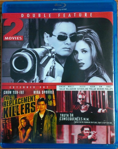 The Replacement Killers: Hired assassin John Lee is asked by Chinatown crime boss Terence Wei to murder the young son of policeman Stan Zedkov. Lee has the boy in his sights, but his conscience gets the better of him, and he spares the child's life. Afraid that Wei will take revenge on his family in China, Lee seeks out expert forger Meg Coburn to obtain the passport he needs to get out of the country, but a band of replacement killers is soon on his trail. Truth Or Consequences N.M.: Raymond Lembecke (Vincent Gallo) is a con just out of prison after serving time for selling drugs for his mob boss Tony Vago (Rod Steiger). (Lembecke was innocent and took the rap for Vago.) Lembecke thinks Vago owes him big time so, when his former boss gets him a measly job in a warehouse, he decides on revenge and plans to steal a million dollars worth of drugs from him. |