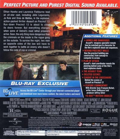 Ethan Hawke and Laurence Fishburne lead an explosive, all-star cast, including John Leguizamo, Ja Rule and Drea de Matteo, in the gripping, action-packed thriller, Assault on Precinct 13. Run-down Precinct 13 is closing its doors forever. But everything changes when a high-security prison transport bus arrives with some of Detroit's most lethal prisoners. Soon, the only thing more dangerous than the criminals on the inside is the rogue gang on the outside. And if they're going to survive the night, two men on opposite sides of the law will have to work together to battle an enemy who doesn't follow the code of cop or criminal. |