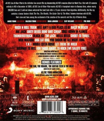 AC/DC Live At River Plate, a definitive live concert film documenting AC/DC’s massive Black Ice World Tour. Shot in December of 2009, AC/DC Live At River Plate marks AC/DC’s triumphant return to Buenos Aires where nearly 200,000 fans, and 3 sold-out shows, welcomed the band back after a 13 year absence from Argentina. This stunning live footage of AC/DC underscores what Argentina’s Pagina 12 newspaper reported by saying “no one is on the same level when it comes to pure and clear Rock ‘n Roll.” Live At River Plate was shot with 32 cameras entirely in HD and features 19 songs as well as ‘behind the scenes’ footage of this massive production coming together among the excitement of anxious fans.