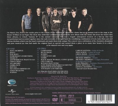 The House Of Blues at Mandalay Bay Resort and Casino in Las Vegas hosted a reunion concert of the classic Santana lineup on March 21. The performance featuring Carlos Santana (guitar), Gregg Rolie (keyboards, lead vocals), Neal Schon (guitar, vocals), Michael Carabello (percussion) and Michael Shrieve (drums) onstage together for the first time since 1973 was recorded for an officially produced DVD/CD package entitled Santana IV: Live At The House of Blues Las Vegas, which comes out on October 21. In June, AXS TV premiered footage of the historic concert in Sin City which marked the first time the classic lineup appeared on television in 43 years. The performance featured additional musicians Karl Perazzo (percussion, vocals), Benny Rietveld (bass) David K. Mathews (keyboards) and included such Santana classics as “Soul Sacrifice,” “Black Magic Woman” and “Oye Como Va” as well as tracks from the recently issued Santana IV studio LP including “Love Makes The World Go Round” and “Freedom In Your Mind” (both featuring guest vocalist Ronald Isley), “Come As You Are,” “Yambu” and others. |