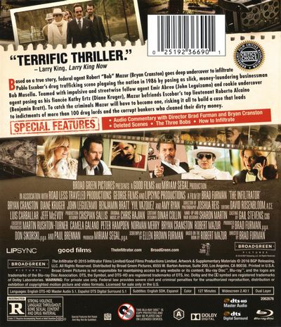 Based on a true story, federal agent Robert "Bob" Mazur (Bryan Cranston) goes deep undercover to infiltrate Pablo Escobar's drug trafficking scene plaguing the nation in 1986 by posing as slick, money-laundering businessman Bob Musella. Teamed with impulsive and streetwise fellow agent Emir Abreu (John Leguizamo) and rookie undercover agent posing as his fiancée Kathy Ertz (Diane Kruger), Mazur befriends Escobar's top lieutenant Roberto Alcaino (Benjamin Bratt). To catch the criminals Mazur will have to become one, risking it all to build a case that leads to indictments of more than 100 drug lords and the corrupt bankers who cleaned their dirty money. |