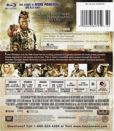7 Deleted Scenes with Optional Commentary by Kevin MacDonald Exclusive Documentary: Capturing Idi Amin Forest Whitaker Idi Amin Featurette Fox Movie Channel Presents Casting Session - The Last King Of Scotland |