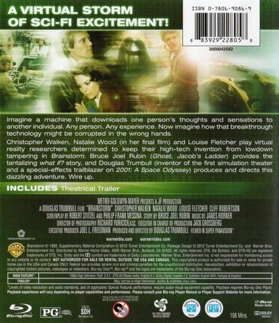 Imagine a machine that downloads one person's thoughts and sensations to another individual. Any person. Any experience. Now imagine how that breakthrough technology might be corrupted in the wrong hands. Christopher Walken, Natalie Wood (in her final film) and Louise Fletcher play virtual reality researchers determined to keep their high-tech invention from lowdown tampering in Brainstorm. Bruce Joel Rubin (Ghost, Jacob's Ladder) provides the tantalizing what if? story, and Douglas Trumbaull (inventor of the first simulation theater and a special-effects trailblazer on 2001: A Space Odyssey) produces and directs this dazzling adventure. Wire Up.