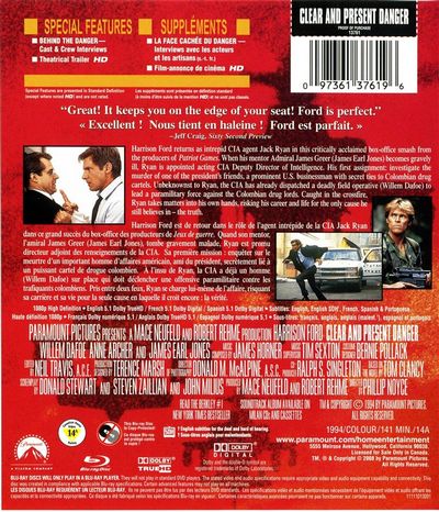 Harrison Ford returns as intrepid CIA agent Jack Ryan in this critically acclained box-office smash from the producers of Patriot Games. When his mentor Admiral James Greer (James Earl Jones) becomes gravely ill, Ryan is appointed acting CIA Deputy Director of Intelliengce. His first assignment: investigate the murder of one of the present's friends, a prominent U.S. businessman with secret ties to Columbian drug cartels. Undeknownst to Ryan, the CIA already dispatched a dealy field operative (Wiliem Dafoe) to lead a paramilitary force against the Colombian drugs lords. Caught in the crossfire, Ryan takes matters into his own hands, risking his career and life for the only cause he still believes in - the truth.-----------------------------------------------------------------French text to be added |