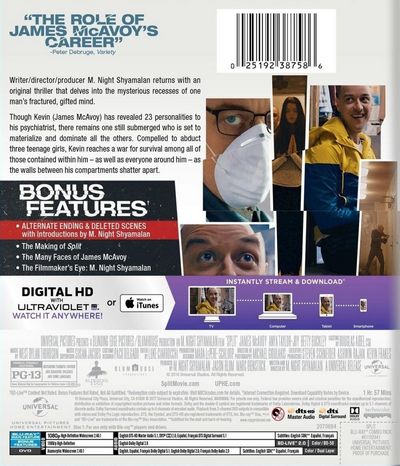 Though Kevin has evidenced 23 personalities to his trusted psychiatrist, Dr. Fletcher, there remains one still submerged who is set to materialize and dominate all the others. Compelled to abduct three teenage girls led by the willful, observant Casey, Kevin reaches a war for survival among all of those contained within him—as well as everyone around him—as the walls between his compartments shatter apart. |