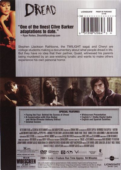Stephen (Jackson Rathbone, the Twilight saga) and Cheryl are college students making a documentary about what people dread in life. But they have no idea that their partner, Quaid, witnessed his parents being murdered by an axe-wielding lunatic and wants to make others experience his own personal horror. |